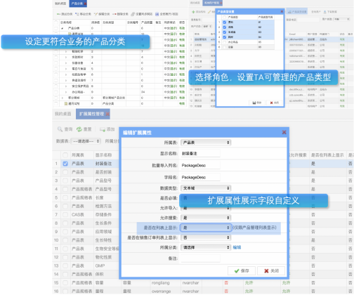 l 產品管理分角色;類型、擴展屬性展示自定義