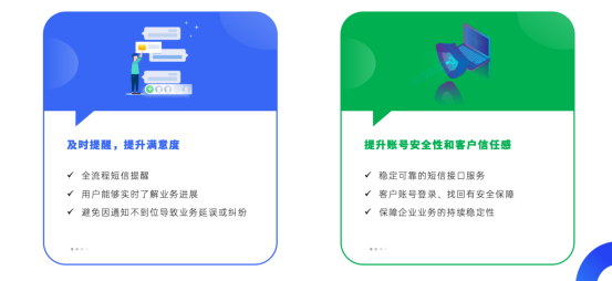 數據對接后,從業務發起、處理到完成的關鍵節點都通過短信提醒用戶,訂單生成時確認短信、物流發貨時的發貨信息、商品送達時的簽收提醒,同時采用短信驗證碼認證、登錄/找回密碼,增強賬戶安全性,系統會向用戶預留手機號發送驗證碼,輸入正確驗證碼才可完成相應操作。