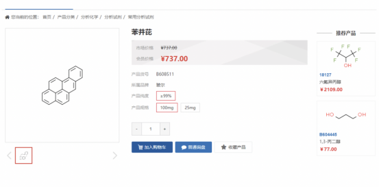 在商城網站上,可以詳細展示每一款化學生物試劑的產品信息,包括高清圖片、詳細的化學和生物特性、純度級別、適用范圍、使用方法、質量標準、儲存條件等。